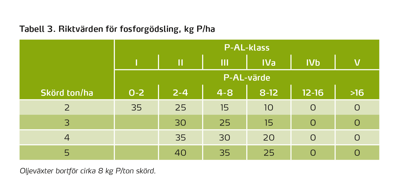 Tabell 3. Riktvärden för fosforgödsling, kg P/ha