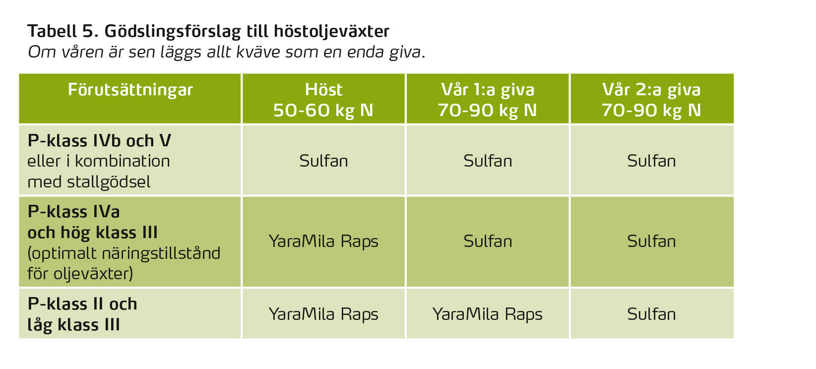 Tabell 5. Gödslingsförslag till höstoljeväxter
