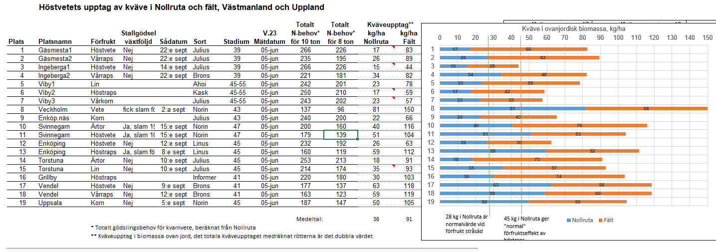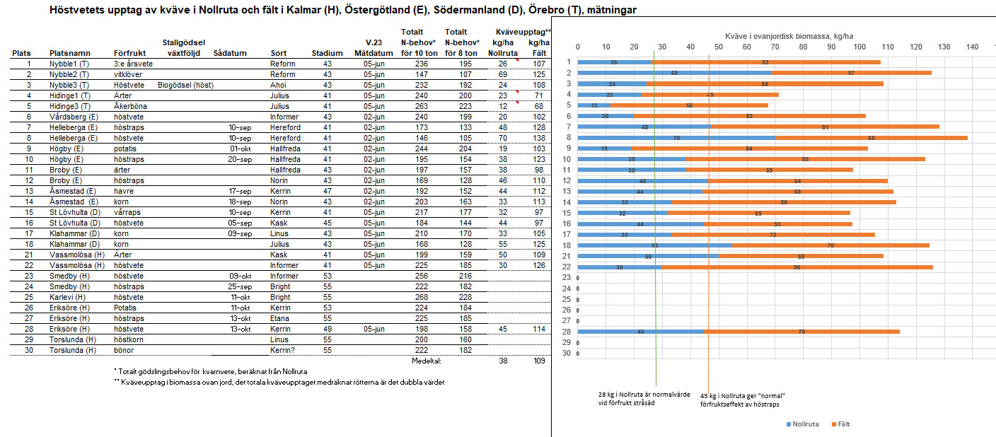 Nybble 1 är en nollruta med medelhög markleverans för området. Ovanjordiskt N-upptag i nollrutan 26 kg N/ha och i omgivande fält 107 kg N/ha. Plantorna var i DC 43 (flaggbladets slida börjar vidgas) vid mätningen.